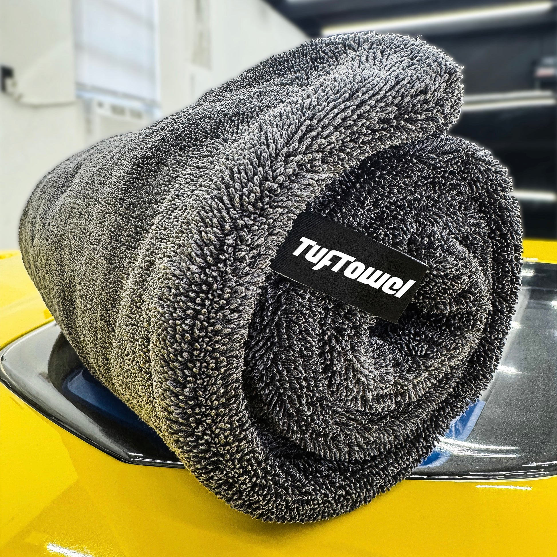 TufTowel - the heavyweight champion of vehicle drying. Crafted with ultra-thick double ply microfibers, this premium drying towel delivers next-level absorbency—soaking up leftover water without breaking a sweat. Whether you’re drying a compact car or a full-sized SUV, TufTowel gets it done—drying 2 to 3 vehicles in one go with streak-free, scratch-free results every time.